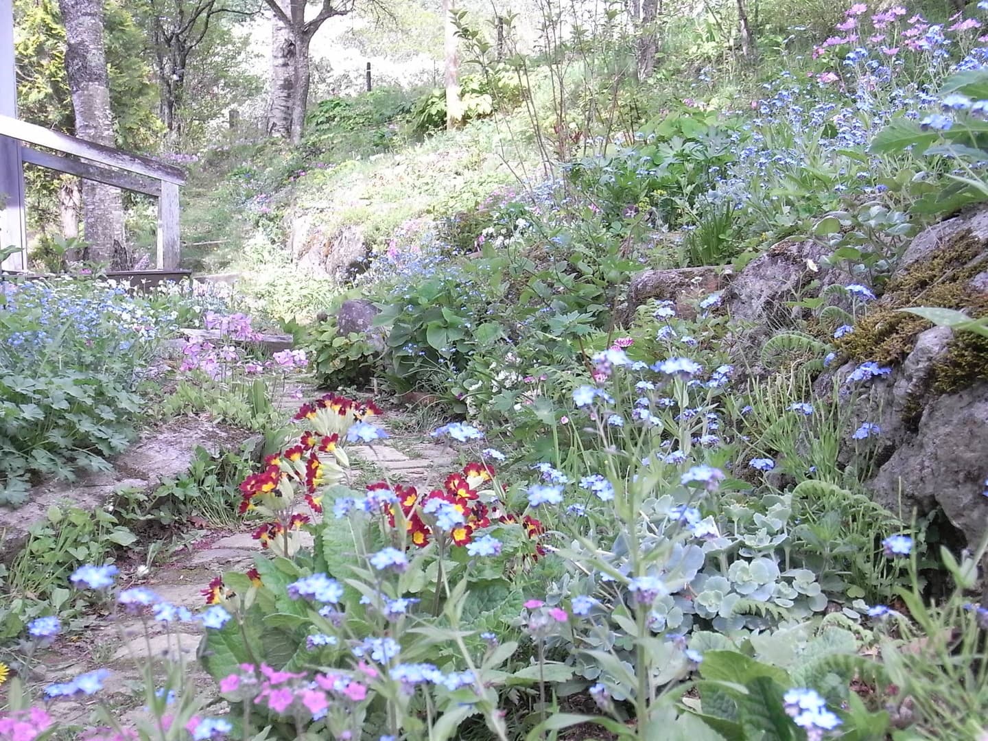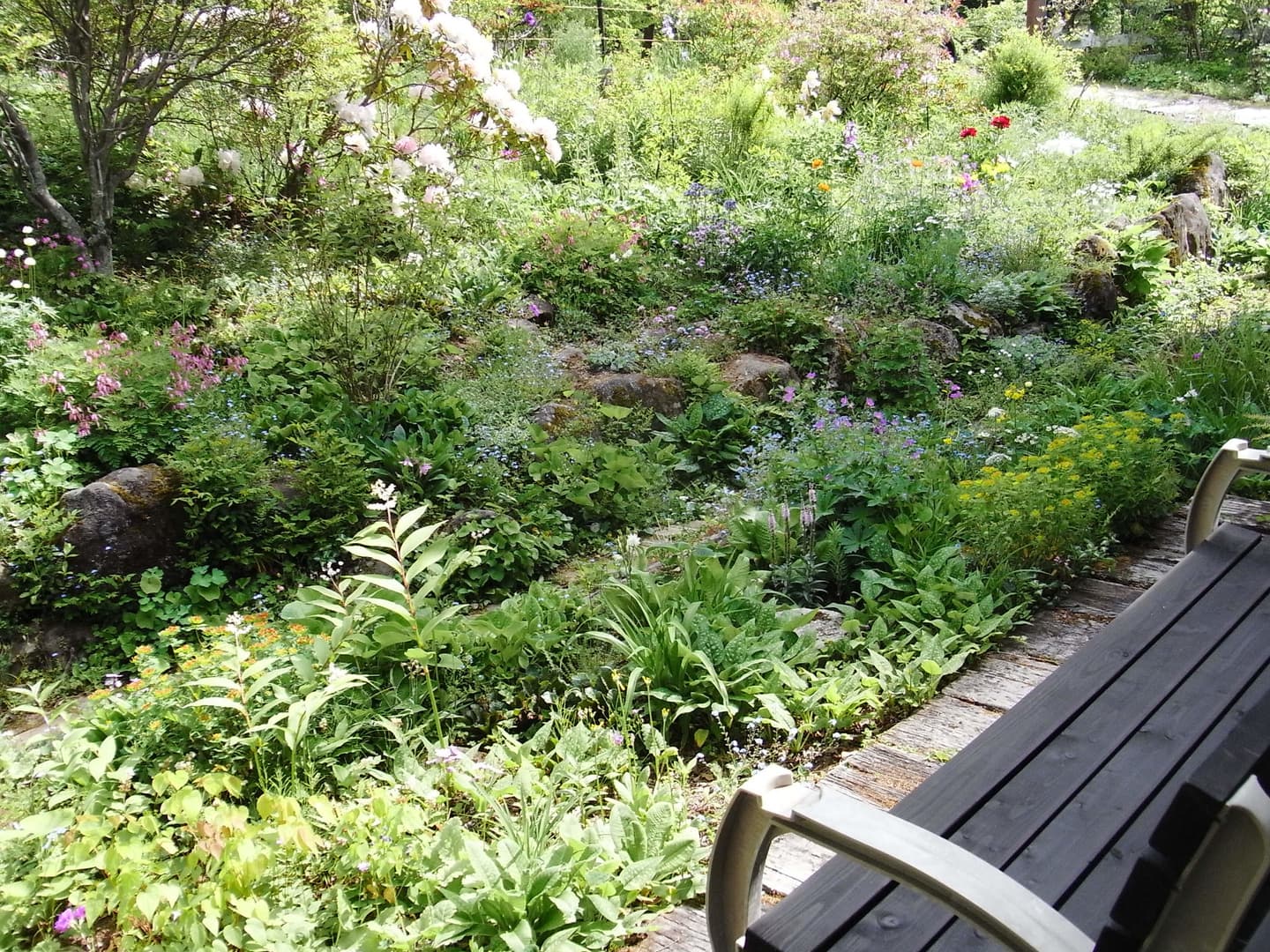 遊歩道の庭に咲くスプリング・エフェメラル達は福寿草、セツブンソウ、カタクリ、アズマイチゲ、菊咲きイチゲ、イチリンソウ、エンゴサク、バイモ、アマナなどが咲いてます。